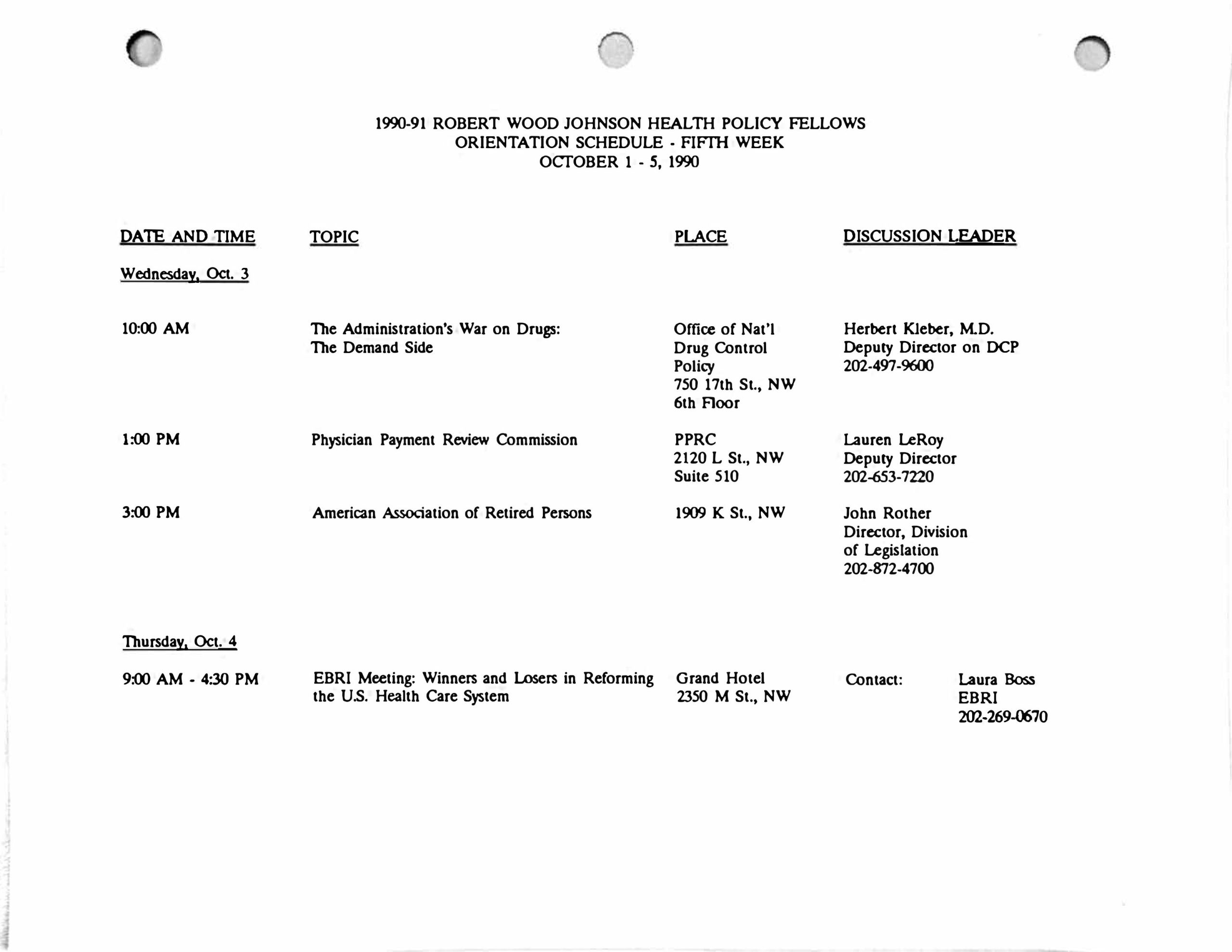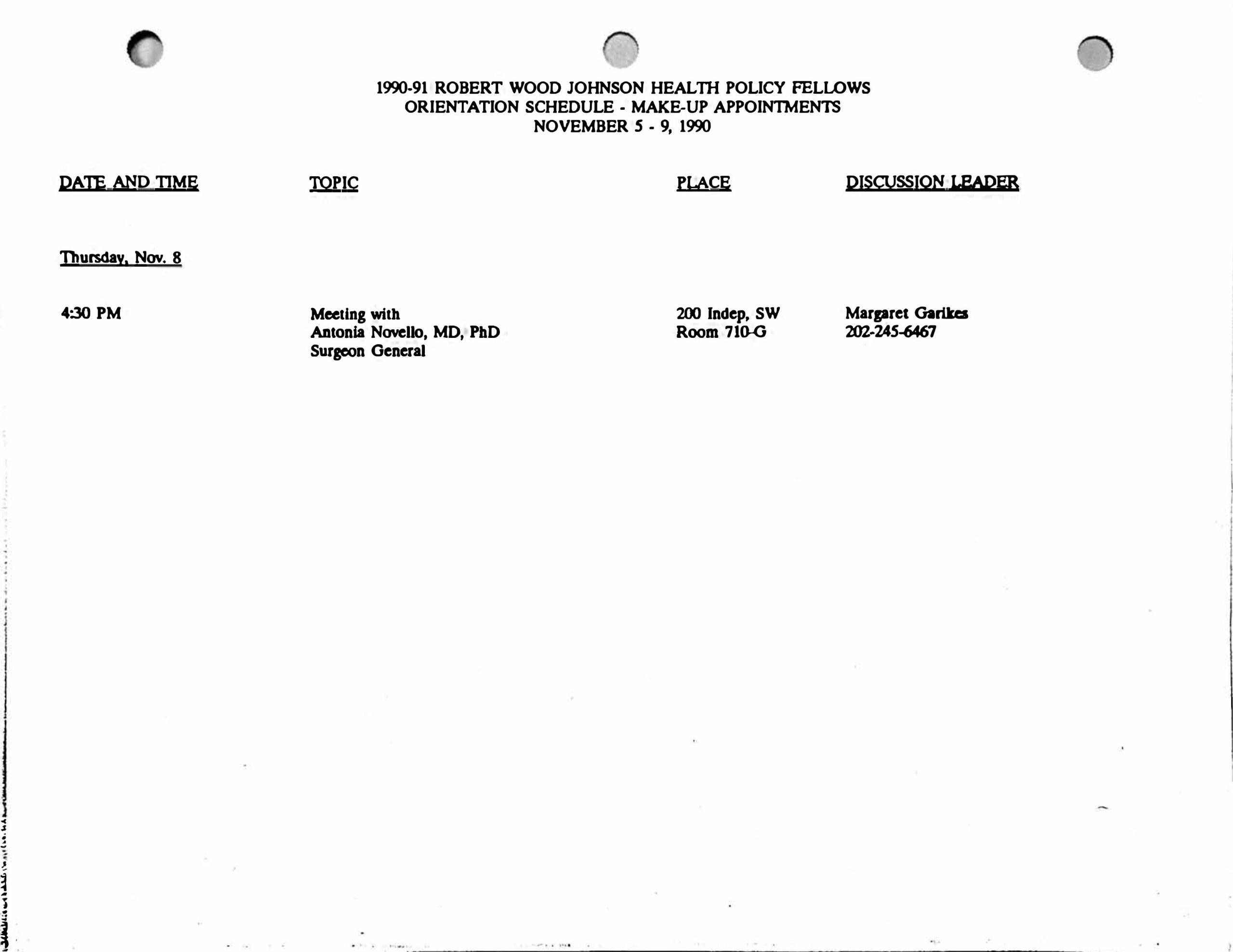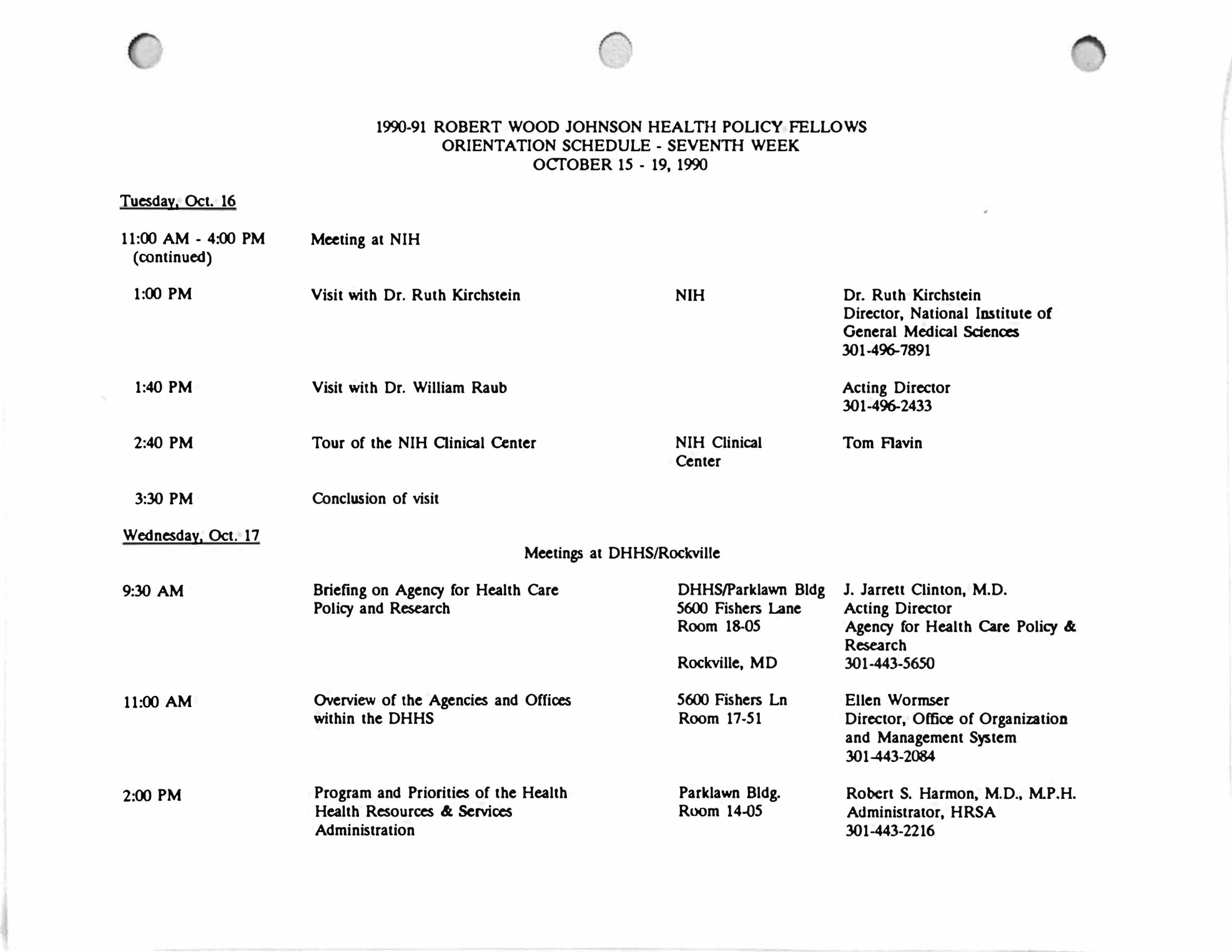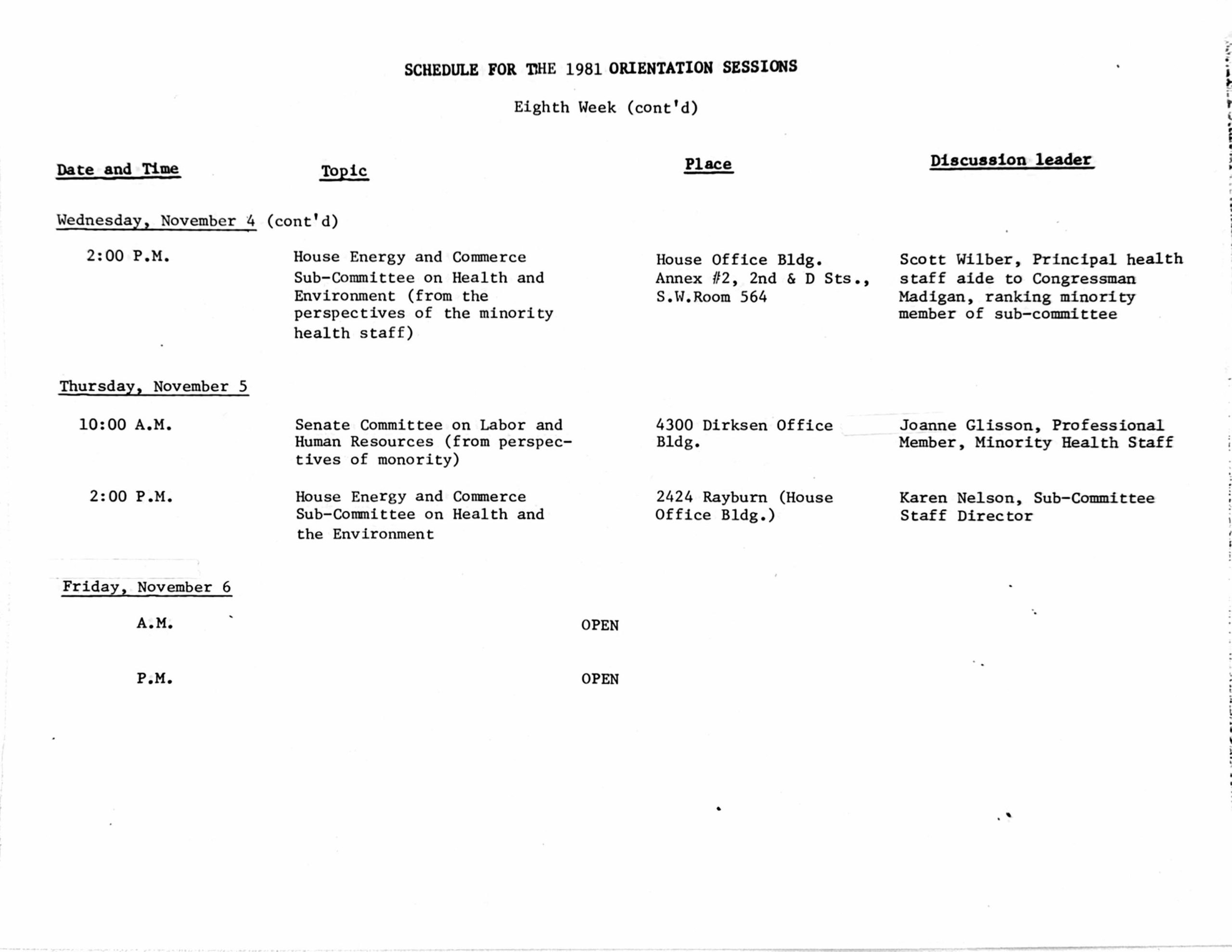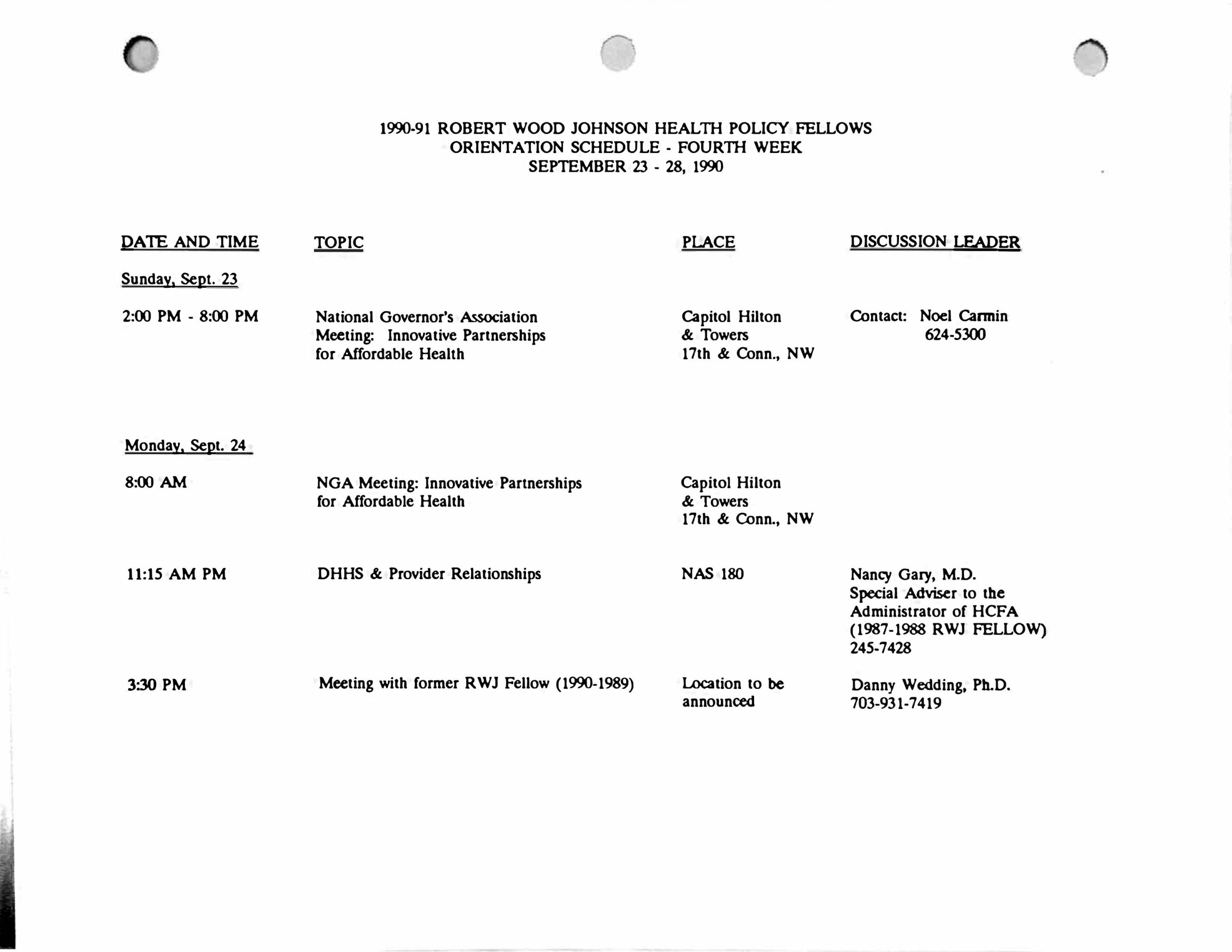 “Fellows would be expected to mọve to Washington, D.C. in time for the opening sessions, and to spend a period of six to eight weeks in an orientation program centered on matters of health and health policy organized by a staff based at the Institute of Medicine. This portion might include seminars to familiarize fellows with health agencies in government, congressional committees responsible for health affairs and the areas covered by each, problems and opportunities in health policy as viewed by the IOM staff and various IOM members, guest experts, HEW staff and congressional staff. Site visits to the various agencies might be scheduled. Insofar as it would be possible and consistent with the development of seminars, the preliminary program should be tailored to each fellow’s individual interests.