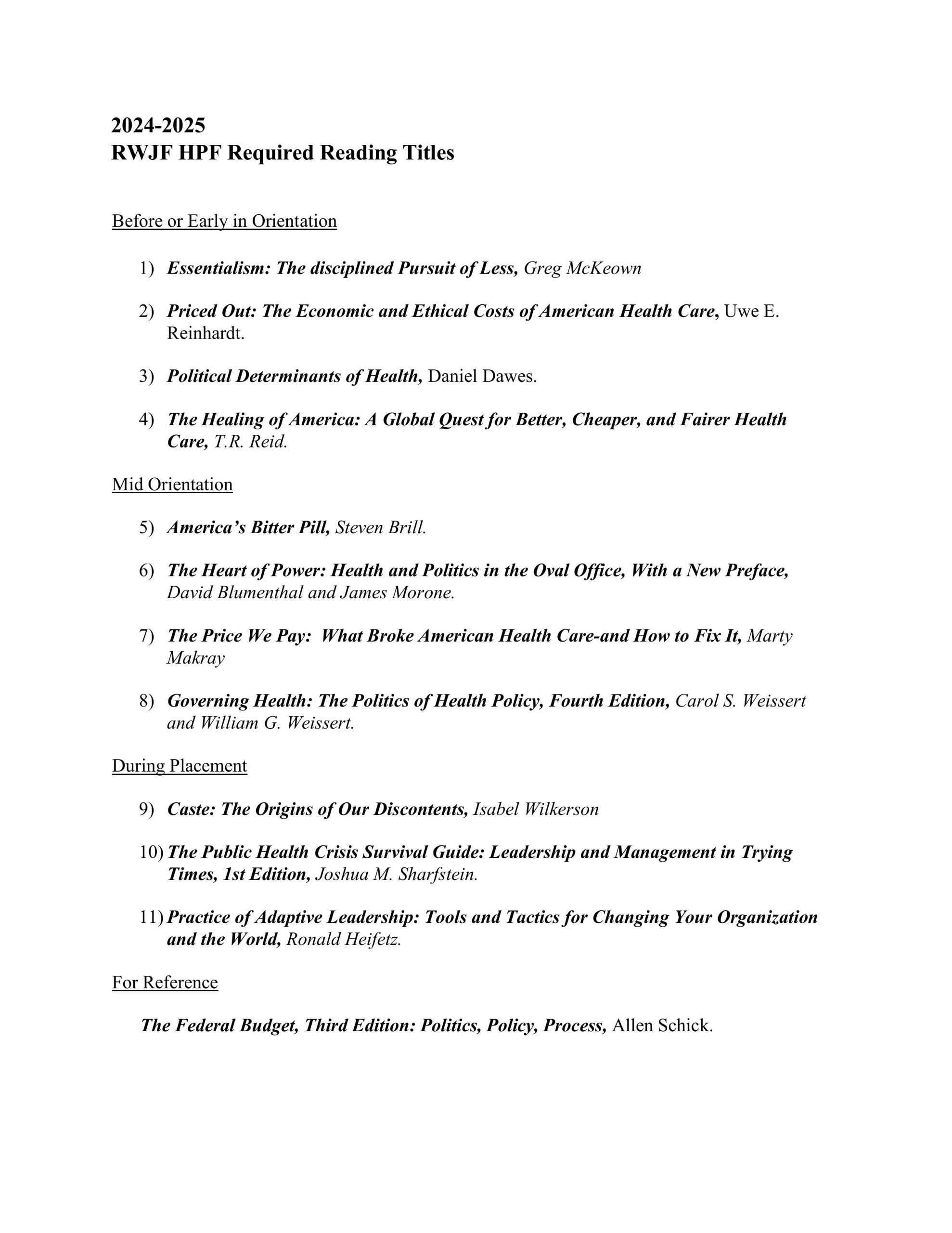Every summer before the fellowship officially begins in September, the incoming fellows receive a reading list and a stack of books and articles either mailed to their homes or shared electronically. The list, like orientation itself, changes every year based on the recommendations of the past cohort and the evolving policy landscape.